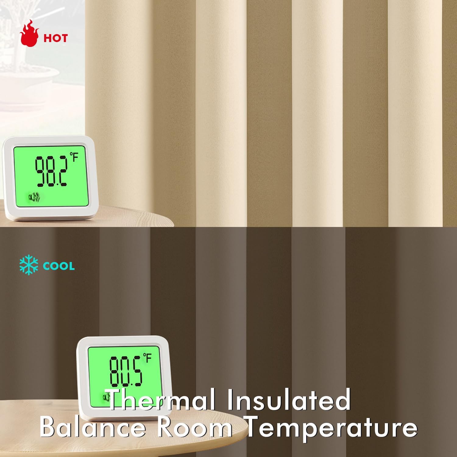 - Energy Saving: The thermal-insulated fabric keeps heat out in summer and retains warmth in winter, reducing your reliance on AC/heating and lowering energy costs by up to 15%. They are perfect for living rooms, bedrooms, patios, villas and offices