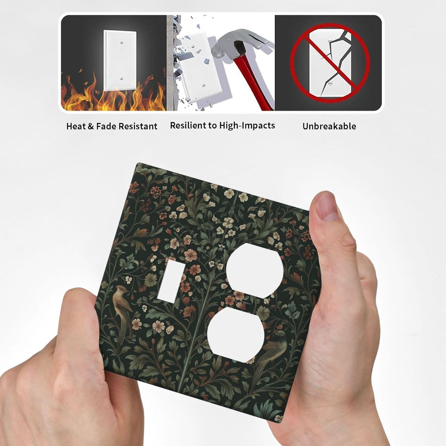 Wallplates Vintage Morris Colorful Flower Green Leaf 1 Toggle 1 Duplex Switch Plate Electrical Gfci Faceplate Decorative Light Switch Covers For Bed Room Living Room Decor