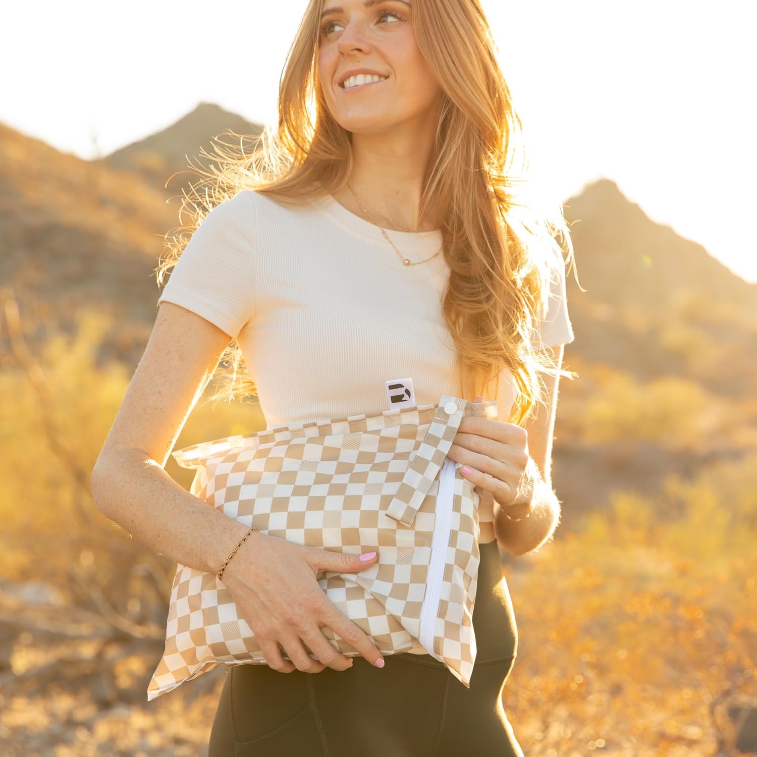 Bumkins Roamio - Waterproof Wet Bag - For Baby, Travel, Swim Suit, Cloth Diapers, Pump Parts, Pool, Gym, Toiletry, Strap to Stroller - Reusable & Easy to Clean - 2pk - Beige Check