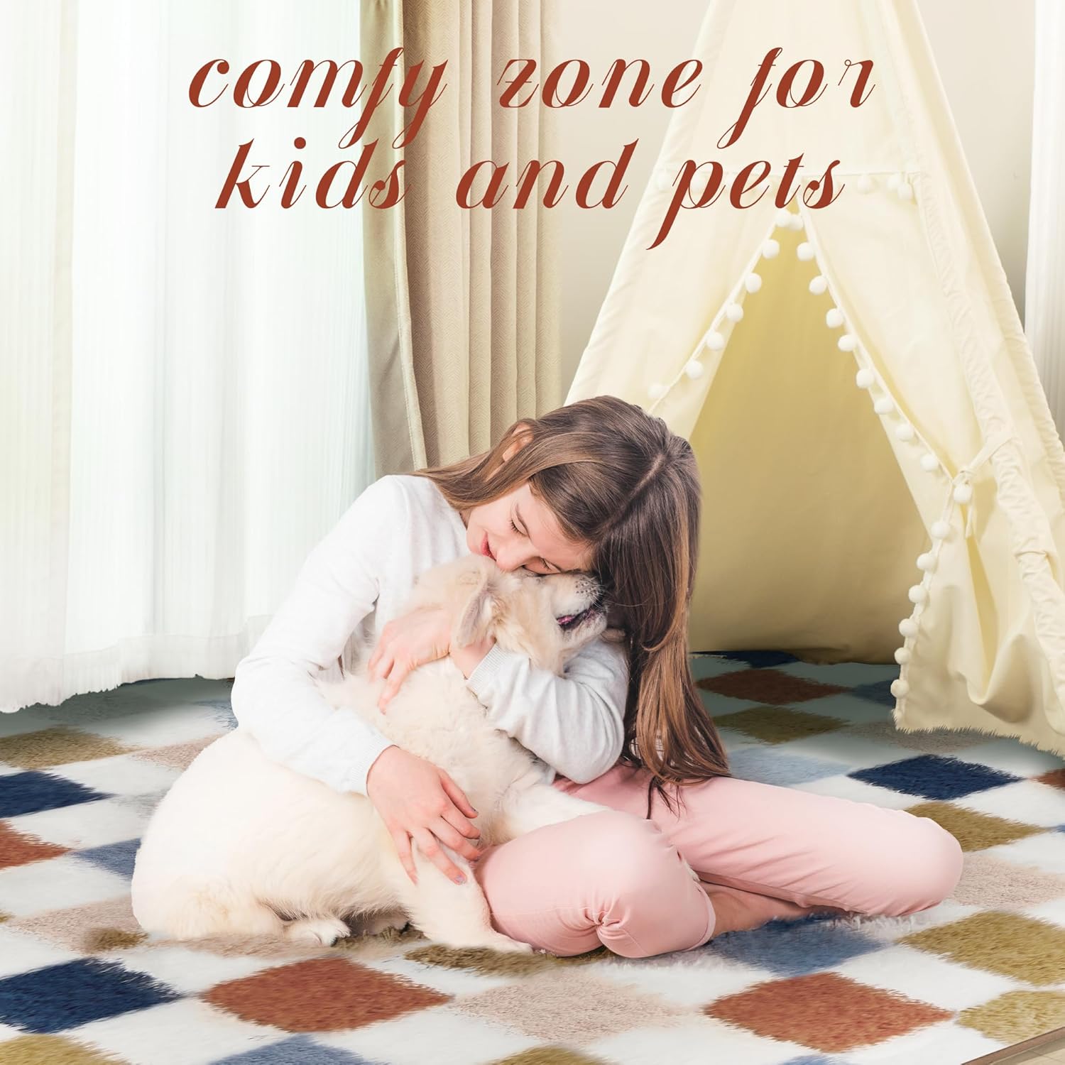 - SUPER FLUFFY- TOOHUB's Fluffy checkered rug is made with high pile, super long and super fine wool and padded memory foam cotton. It gives your feet a cloud-like comfort. You will be surprised not only by the design of the rug but also by its fluffiness and softness. Perfect for families with small children or pets.