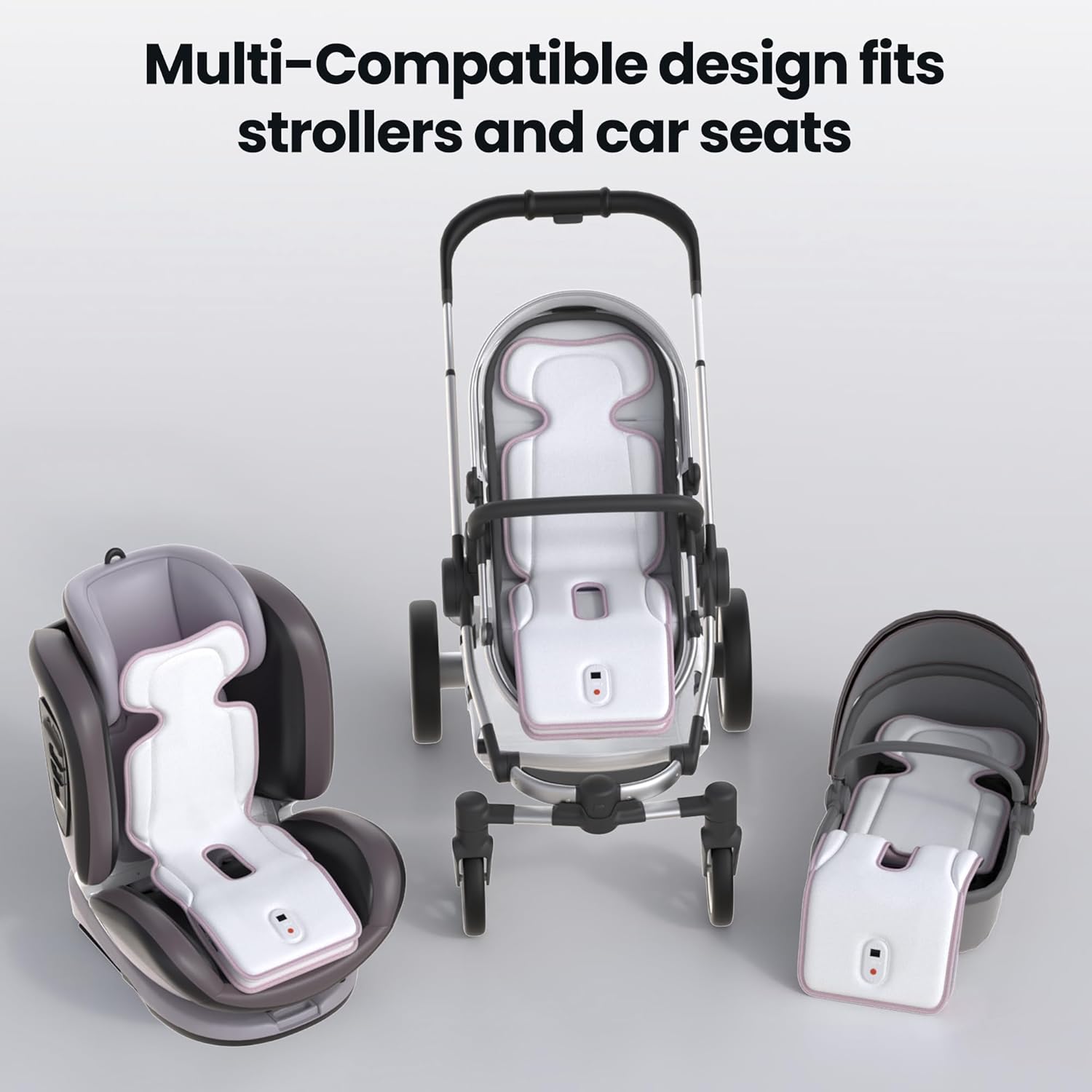 - [Versatile for Multiple Baby Gear]Not limit comfort to strollers—our cooling pad seamlessly fits car seats, high chairs, bassinets, rockers, and swings. Patented 3D airflow + dual Blower Fans work anywhere, delivering targeted cooling to sweat zones. One investment protects your baby’s comfort in every gear, all summer.