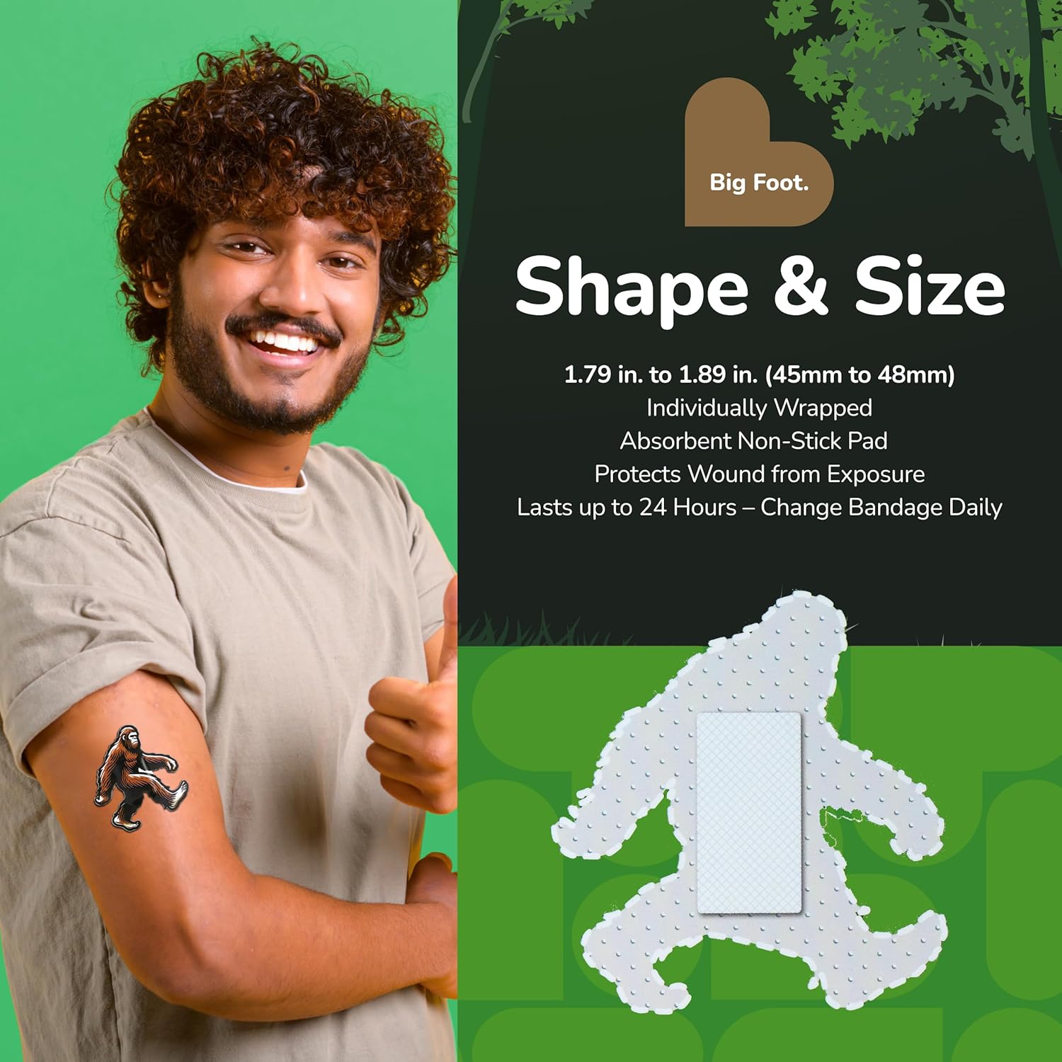 - BIGFOOT BANDAGES: This 24 piece pack of Sasquatch shaped bandages is great for putting a smile on kids' faces while protecting wounds such as cuts, scrapes, and burns; sticky bandages come in a cute tin and are perfect for kids and adults alike, and also for school nurses and pediatric doctors