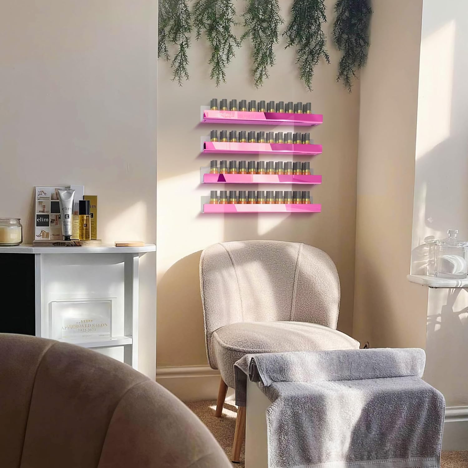 4 Pack 15 Inch Pink Reflective Acrylic Shelves, Pink Floating Shelves, Modern Sunglasses Essential Oil Picture Ledge Display Toy Storage Shelf