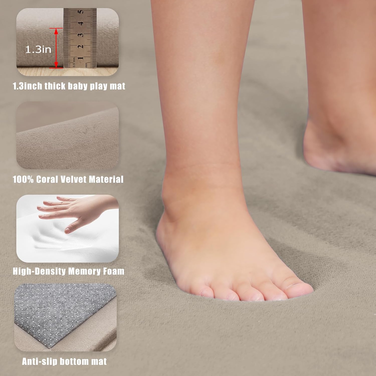- SOFT TOUCH & CARING PROTECTION: Every exploration of the baby requires soft care. This baby play mat for floor is specially designed for the baby's delicate skin and play nature. The 1.3-inch thick memory foam filling gives the baby just the right support and a full sense of security. The surface is 100% coral fleece material, which does not shed or fall off.