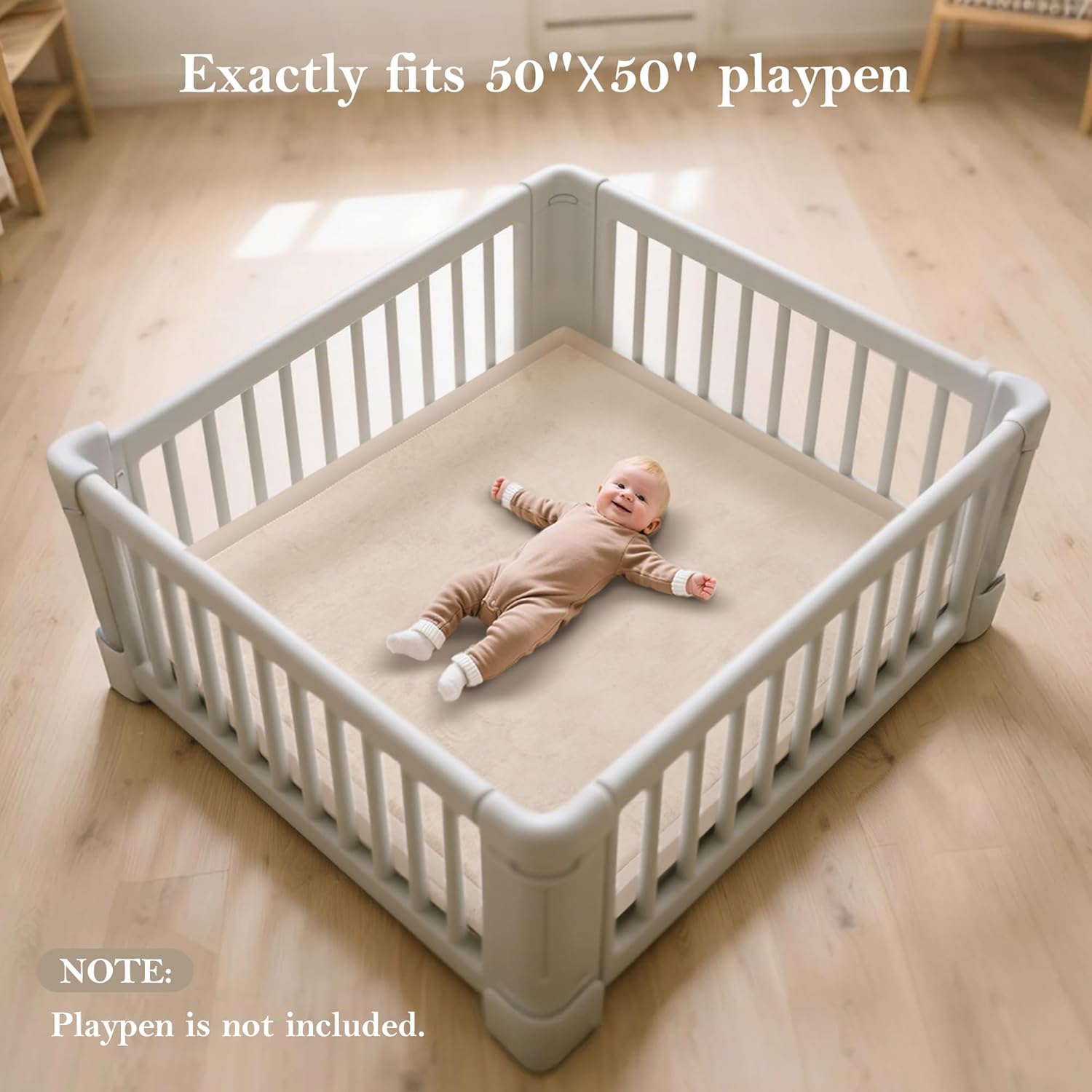 Baby Play Mat for Floor, 1.3" Thick Memory Foam Muscle Playpen Cushion, Soft Coral Velvet Tummy Time Mat with Non-Slip Backing, Water Repellent Child Nursery Rug for Toddlers, Kids (Beige, 39X59)