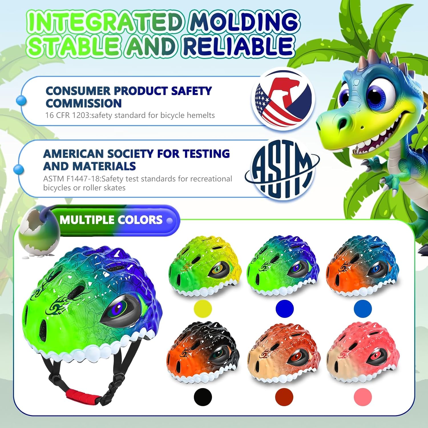 Toddler/Kids Bike Helmet Set for Boys Girls 3D Adjustable Kids Helmet Protective Gear Set Knee Elbow Wrist Pads and Multi-Sports Skateboard Scooter Cycling Roller Balance Bike