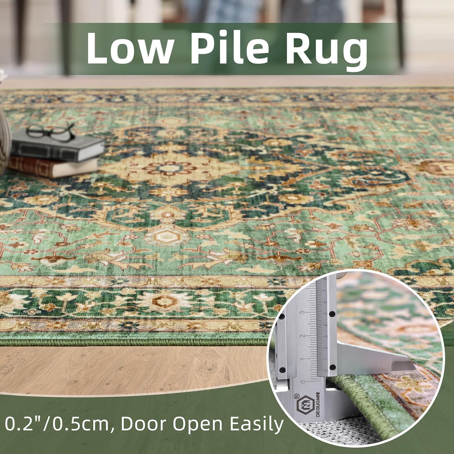 - [Practical Low-Pile]: This thin rug is designed to be 0.2 inches thick considering that it is intended for everyday use. The large rug can be easily placed in entryways and under furniture, and will not obstruct doorways. Made from enhanced synthetic durable fibers, these faux wool rugs are not only soft to the touch but also durable and long-lasting.