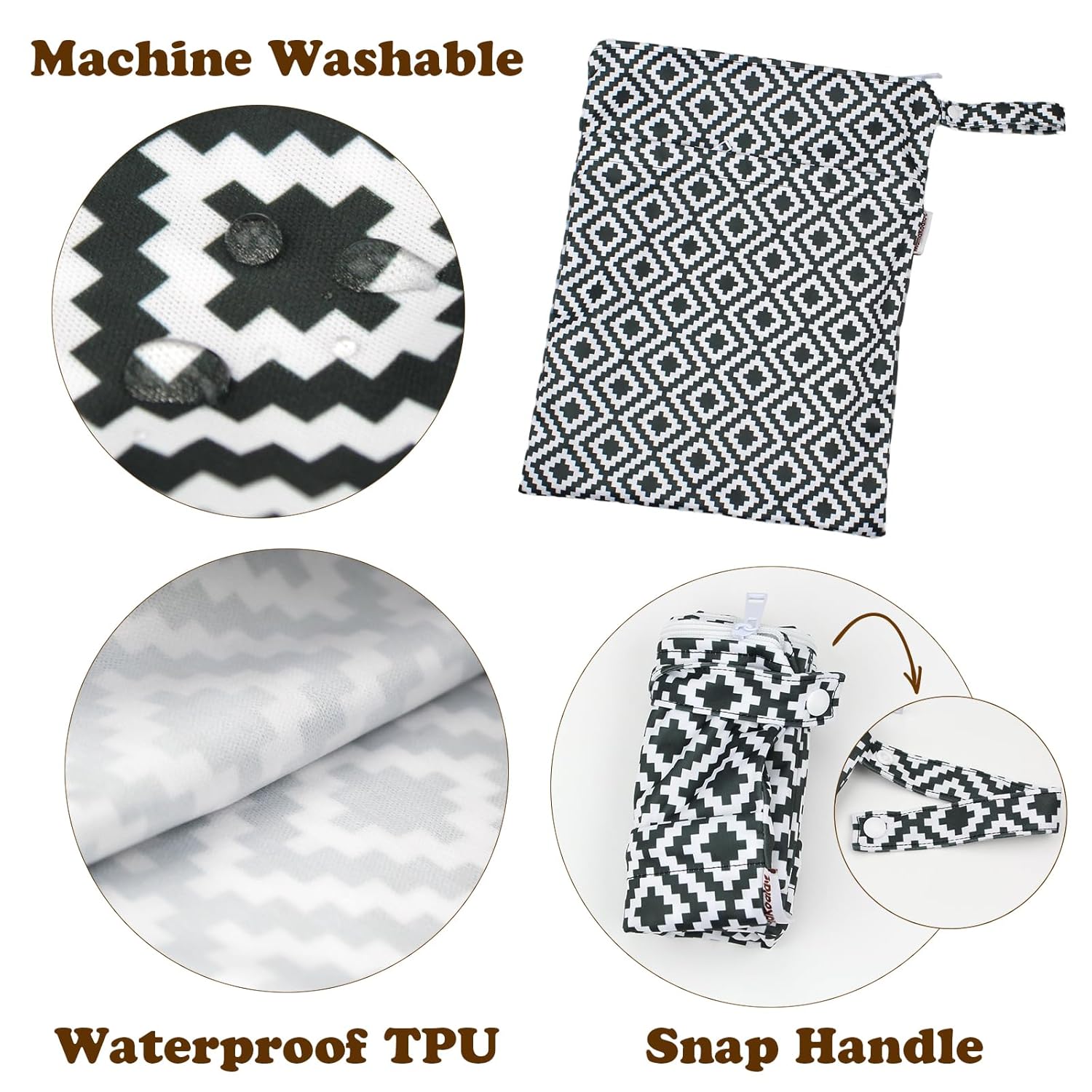 - TWO ZIPPERED POCKET DESIGN - This all in one baby wet bags have two separate TPU-lined compartments with individual zippers and a loop handle with a snap. Zippered compartments to accommodate your wet and dry items at the same time while keeping them separate.