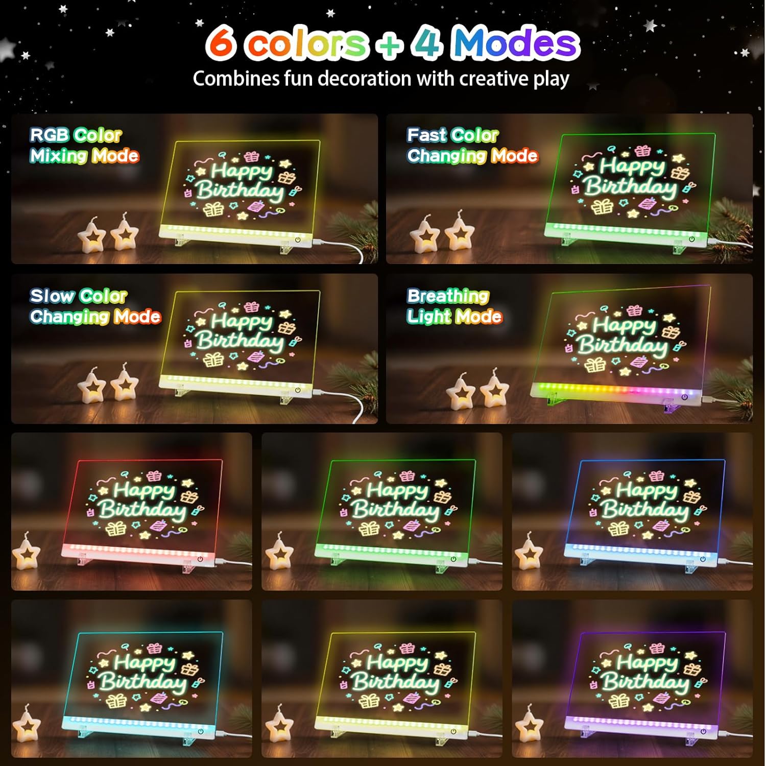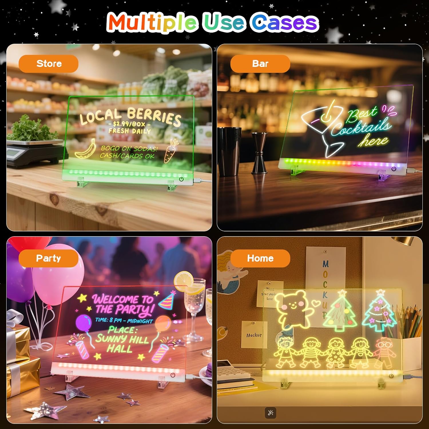 - 【Perfect for Any Occasion】:For kids, ignite creativity through drawing & doodling while building focus. At home or work, replace sticky notes, schedules, or shopping lists. For businesses, create eye-catching menus or promo displays in cafés and restaurants. It even doubles as a night light, holiday decor, or party accent for a dazzling effect.