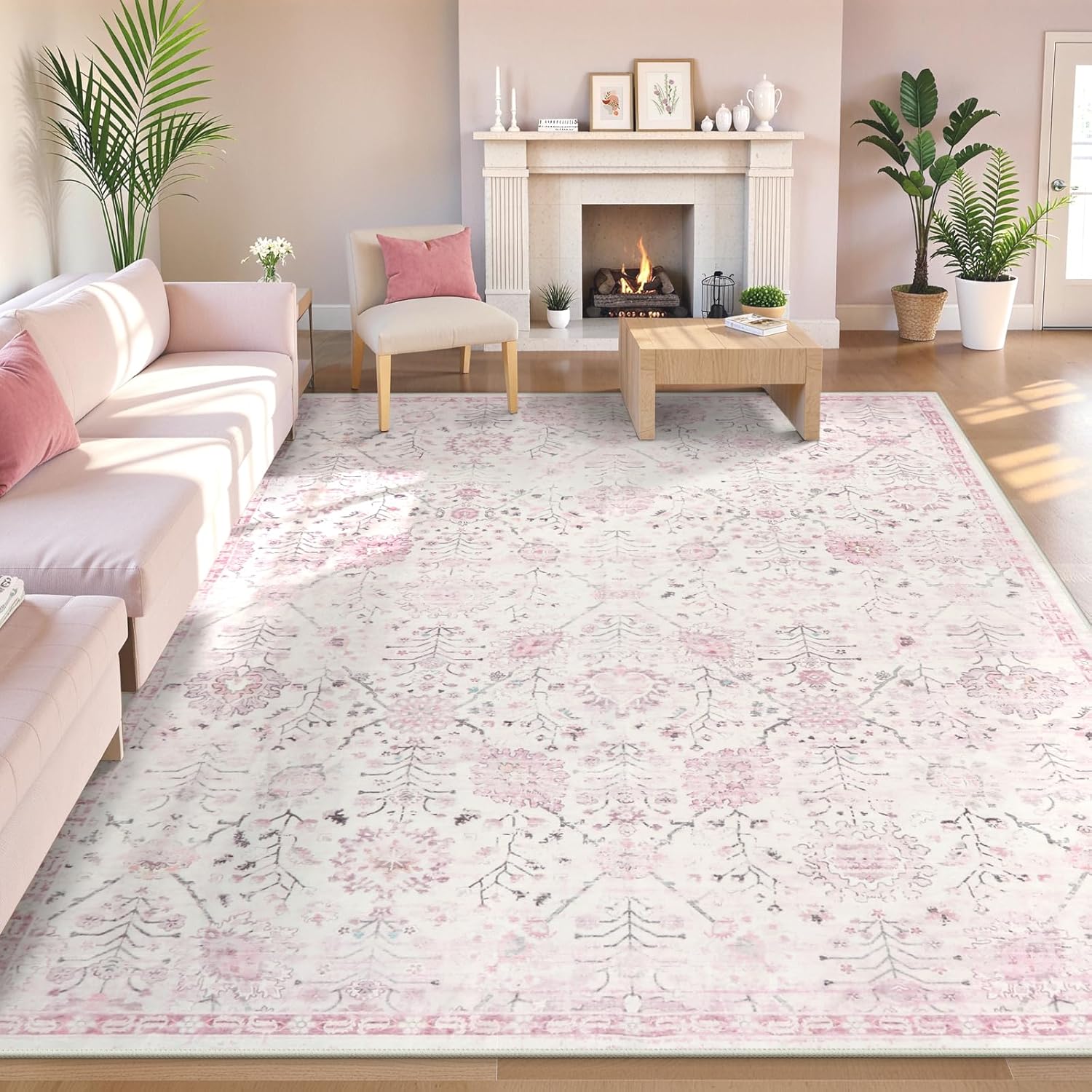 Lahome Washable Rugs 8x10, Soft Nursery Area Rug for Girls and Kids, Low Pile Boho Purple Carpet for Snug Bedroom Kids Room Classroom, Spill-Proof Non Slip Floral Fresh Simple Carpets for Living Room