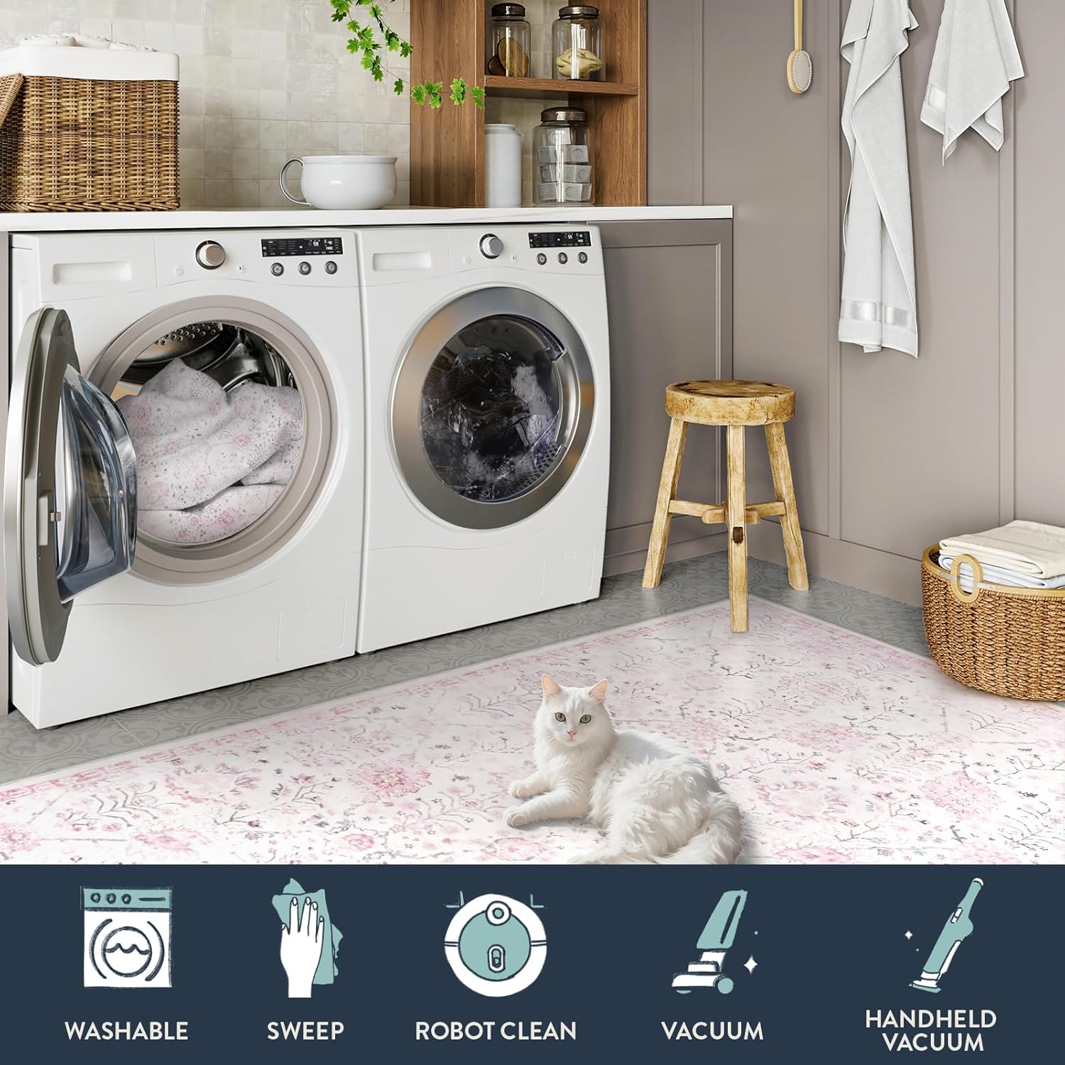- Easy to Clean: Low pile design makes cleaning easy. Shaking and patting is enough for everyday life. Machine wash mode on gentle cycle is fine. Saving you more time. Low power hoovers are recommended