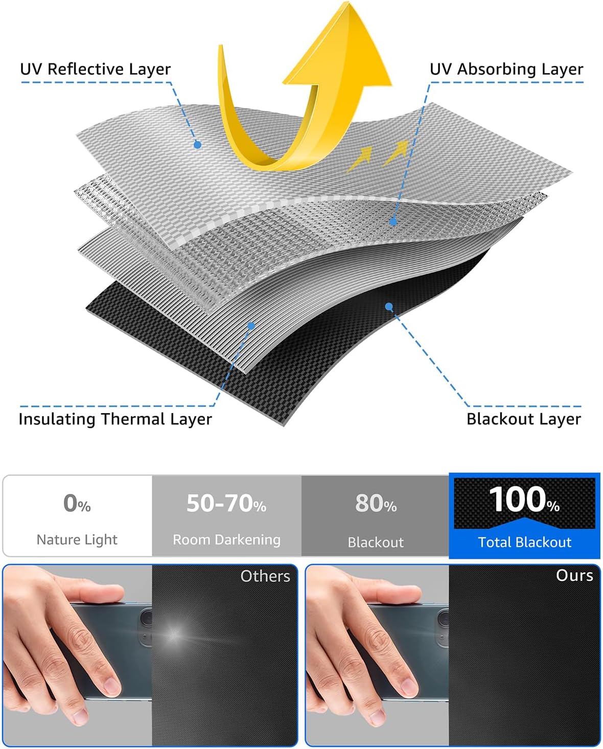 - 🌛【100% Blackout】Sumobaby blackout curtains adopts upgraded reflective silver coating and high-density black polyester, the blackout effect can easily reach 100%. Blocks sunlight and harmful UV rays to darken your room, thermal insulated and enhance privacy.