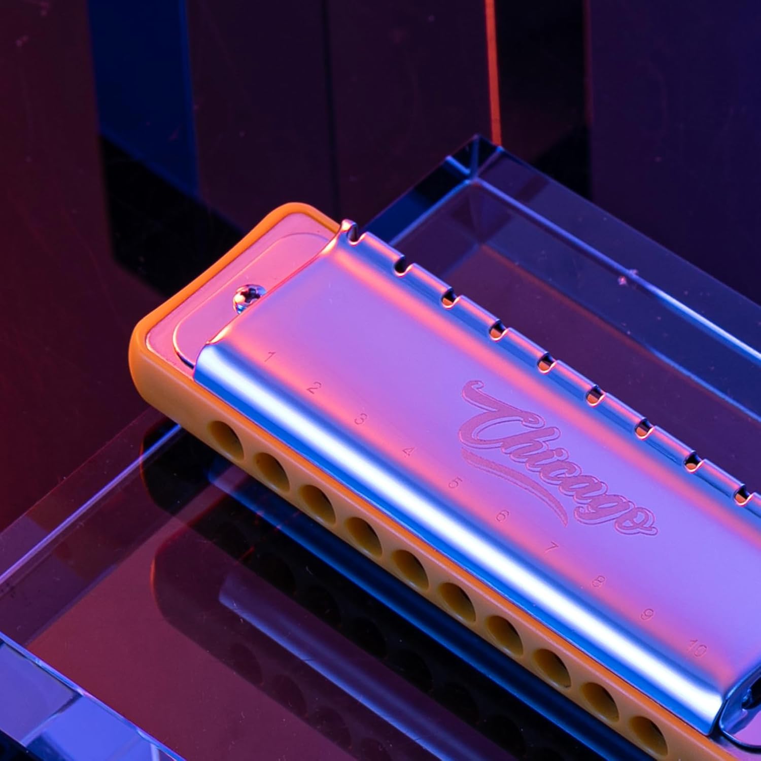 - Professional Design: Precision-crafted 10-hole harmonica in the key of Bb featuring 20 distinct tones, perfect for playing blues, folk, and jazz music with authentic Chicago-style sound