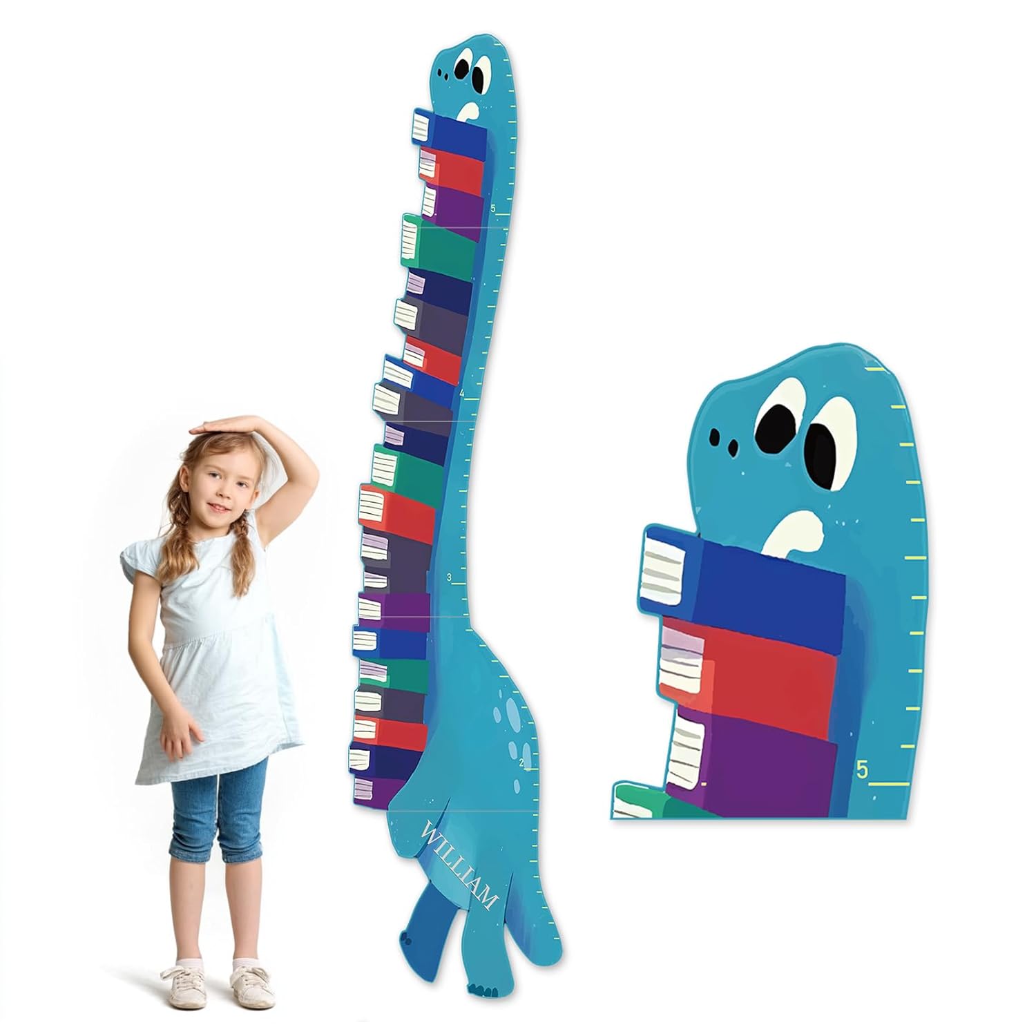Personalized Name Growth Chart for Wall, Dinosaur Book Wooden Growth Chart Kids Height Chart, Wall Measurement for Kids, Height Chart for Wall, Growth Ruler for Toddler Playroom Decor