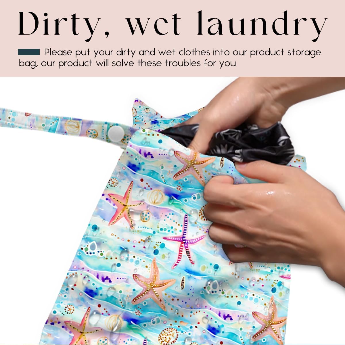 Wet Bag for Swimsuit, Beach Travel Essentials Wet Dry Bag, for Sunscreen Toiletry Dirty Clothes Yoga Gym Diaper, Friends Summer Beach Vacation Gifts. Starfish and jellyfish