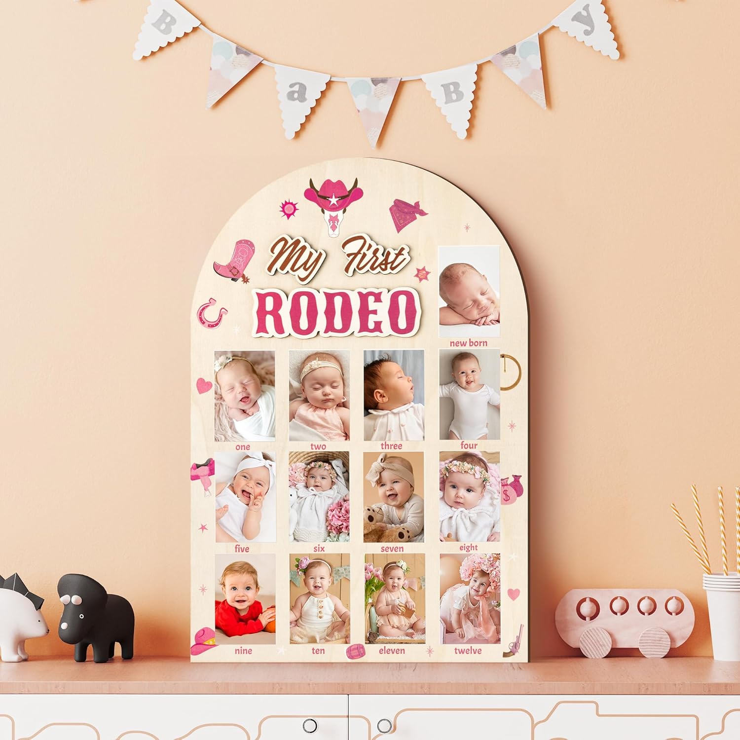 R HORSE My First Year Photo Frame Board, 3D Western Cowgirl Birthday Decorations Display Wood Board, Baby First Year Picture Frame 12 Months Milestone 1st Birthday Nursery Decor Gift for Girl