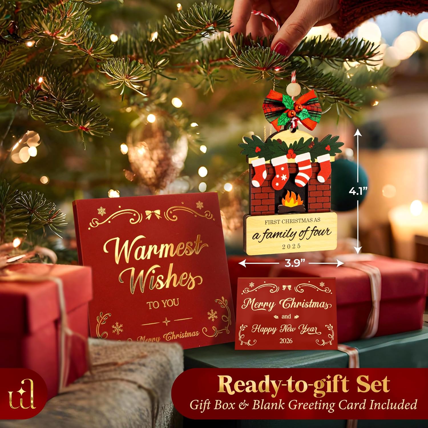 - Family of 4 Christmas Ornament 2025: Celebrate the magic of the holidays with our family of 4 christmas ornament 2025. Designed as a first christmas as a family of 4 ornament, itโs a meaningful keepsake that beautifully marks this special milestone.