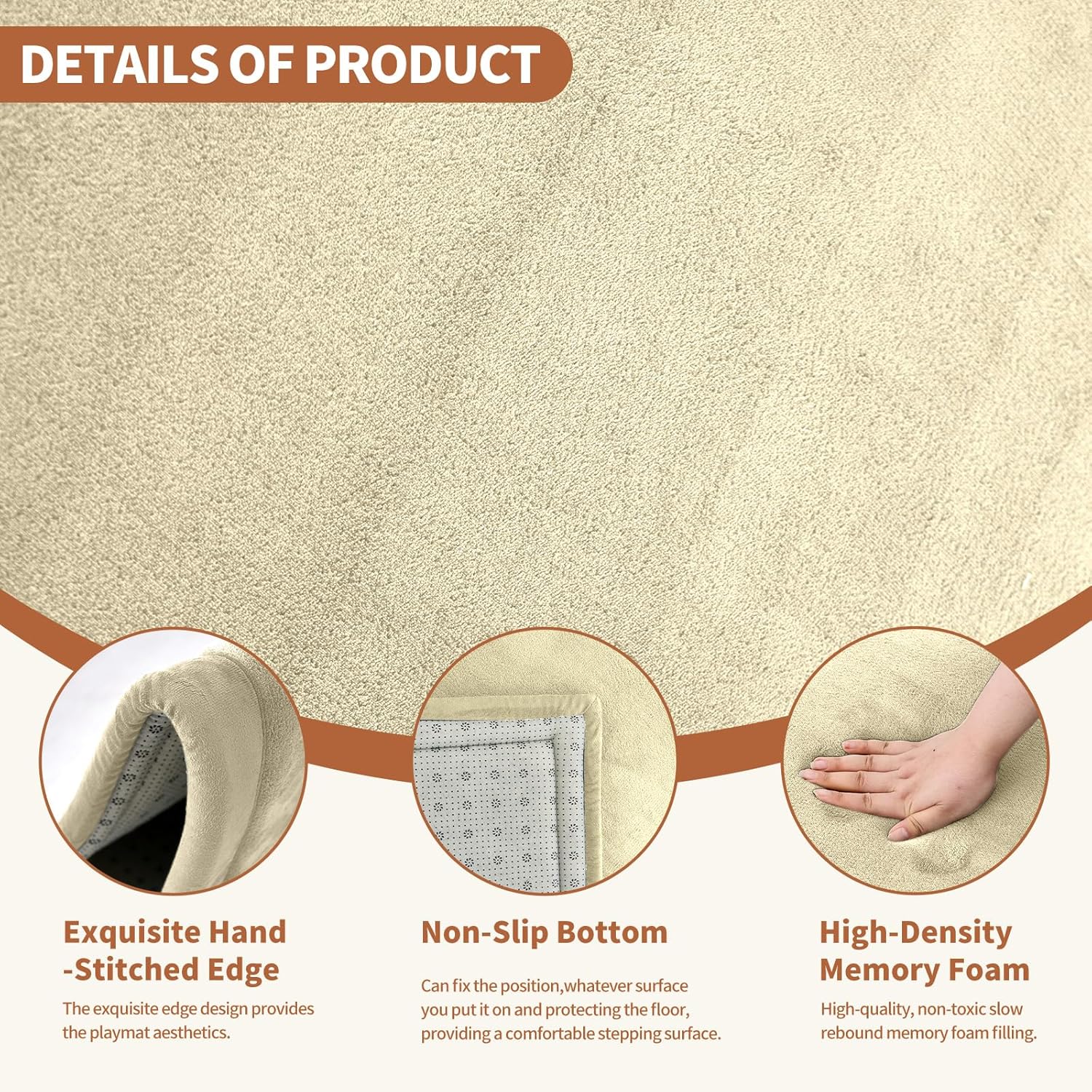 - THICK COMFORTABLE PLAYMAT - Our play mat features super soft coral velvet fabric with high-density memory foam padding, offering approximately 1.4 inches of thickness. The nursery baby rug is breathable, colorfast, and gentle on baby's skin, providing a cushioned surface that helps reduce the impact of falls during playtime