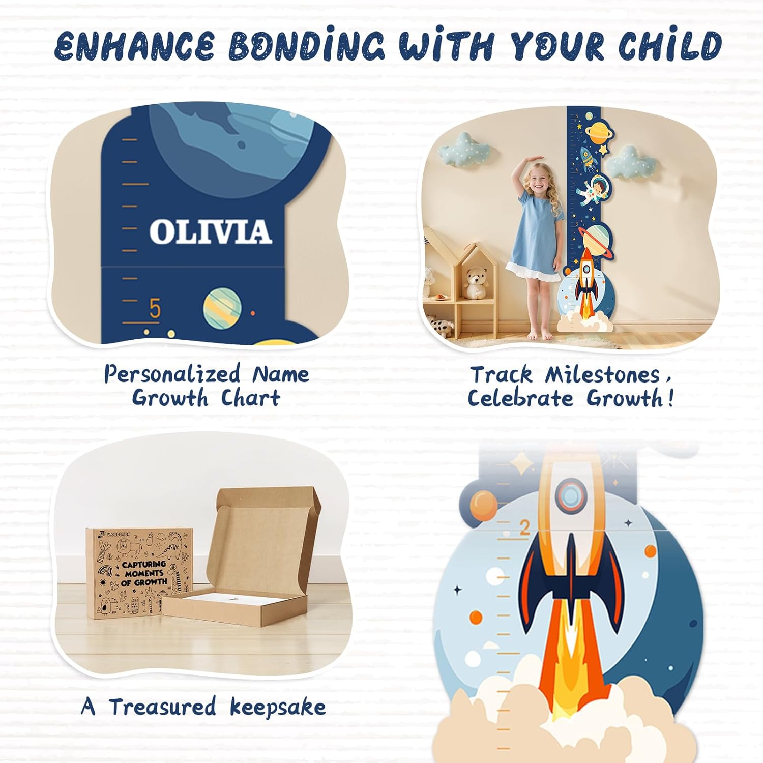 - Personalized Name Growth Chart: The height ruler wall tape can customize the name, measurement scale (centimeters or inches) for a personal touch, attracting the baby's attention. Kids height wall chart creates precious childhood memories, making measuring height interesting and not boring.